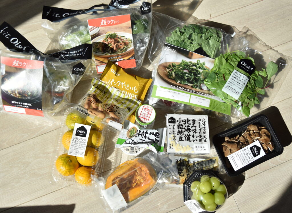 基本のお野菜や果物、肉・魚だけでなく、オイシックスの看板商品「ミールキット(Kit Oisix)」も必ず1~2品セットに含まれているのが大きな特徴。